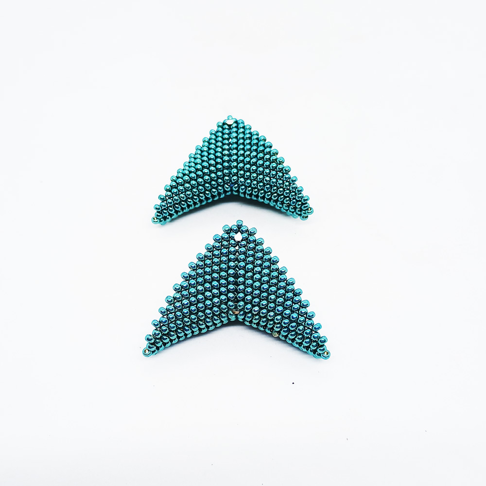 Beautiful beaded earrings made from the finest glass beads in an array of attractive colours by Beloved Beadwork from the Cape, RSA. These earrings are easy to wear and their most popular range. Please specify which colour if ordering online – indigo, sea green, salmon, royal blue, purple, pale gold, light blue, dusty pink, grey or pale pink.