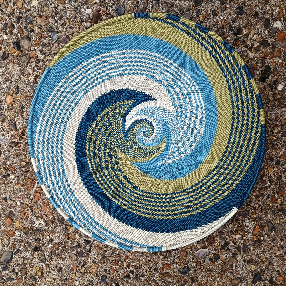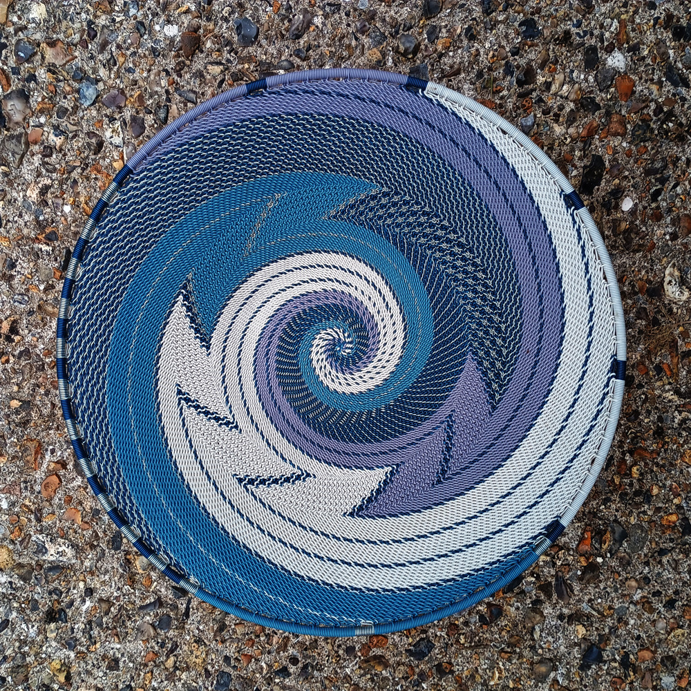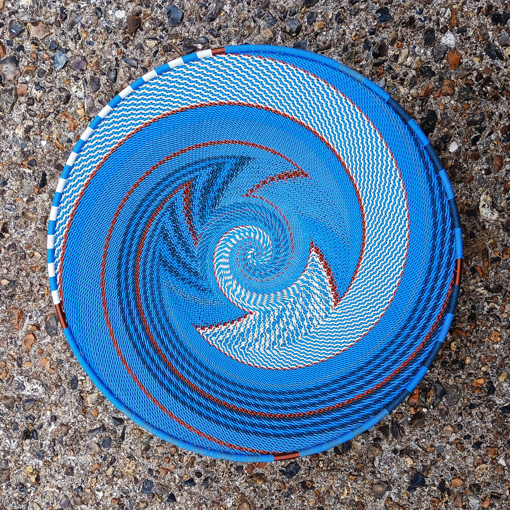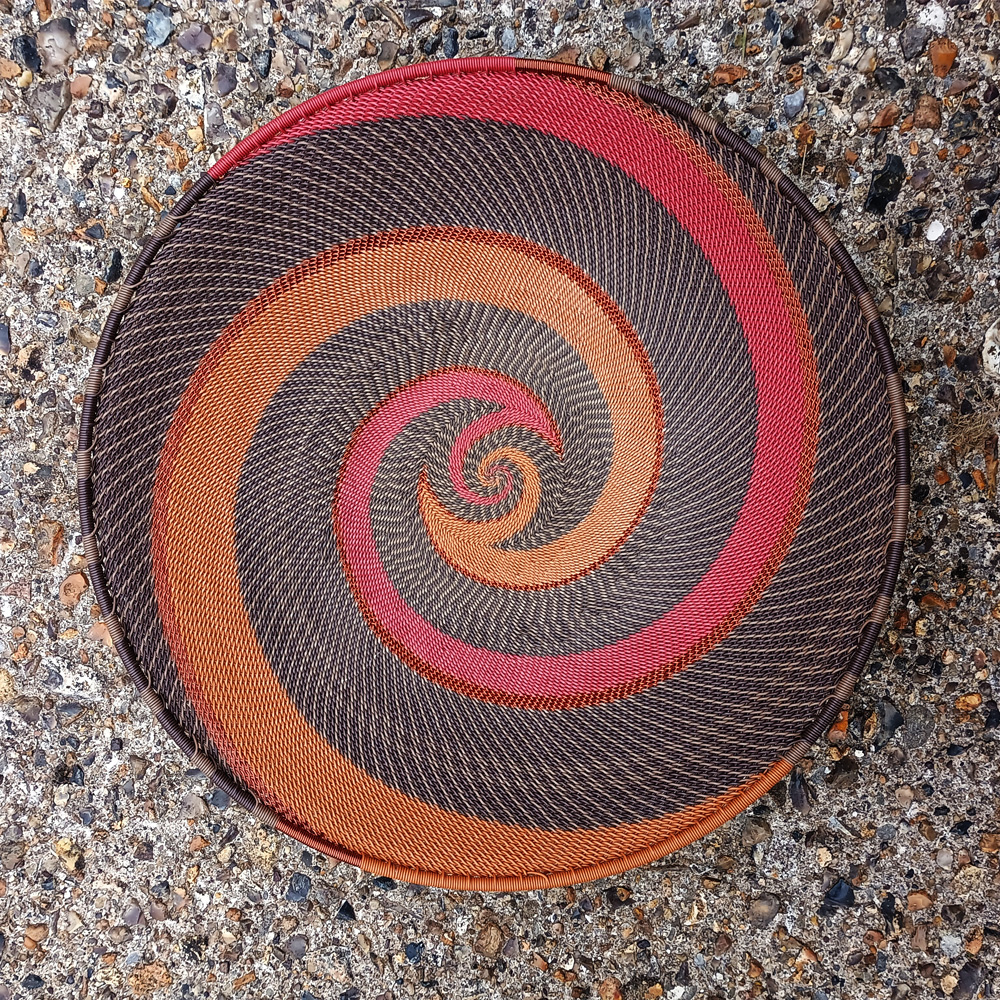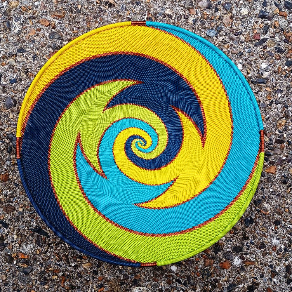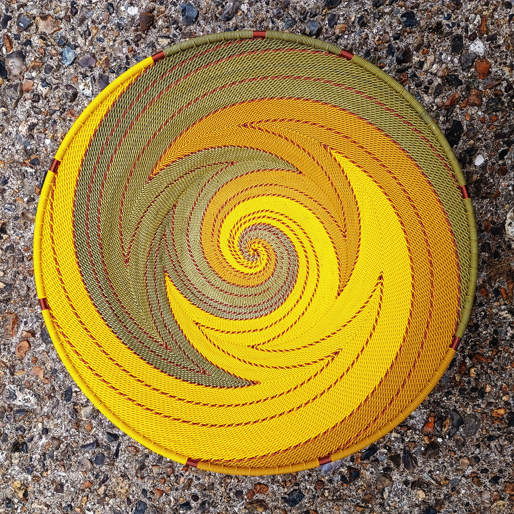 A large cheerful sunshine yellow wire basket, woven by trained weavers in the heart of Zululand near Rorke’s Drift. Every basket has a unique design like a fingerprint. If ordering online, please specify your colour choice – sunshine, breeze, citrus, dream, earth, fire, natural, ocean, sky, spring or sunset.