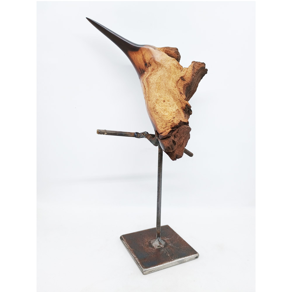 An elegant tall bird sculpture in Colophospermum or Mopane wood by Zimbabwean born sculptor Boniface Chikwenhere who now lives and works in Somerset West in the Cape Province of South Africa. A lover of nature, Boniface creates many amazing avian sculptures in a variety of wood, each with their own particular character and beauty.