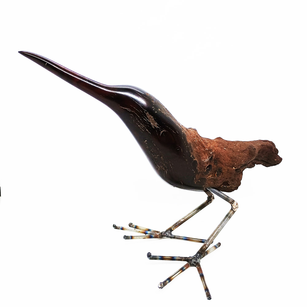 A sleek bird sculpture in Colophospermum or Mopane wood by Zimbabwean born sculptor Boniface Chikwenhere who now lives and works in Somerset West in the Cape Province of South Africa. A lover of nature, Boniface creates many amazing avian sculptures in a variety of wood, each with their own particular character and beauty.