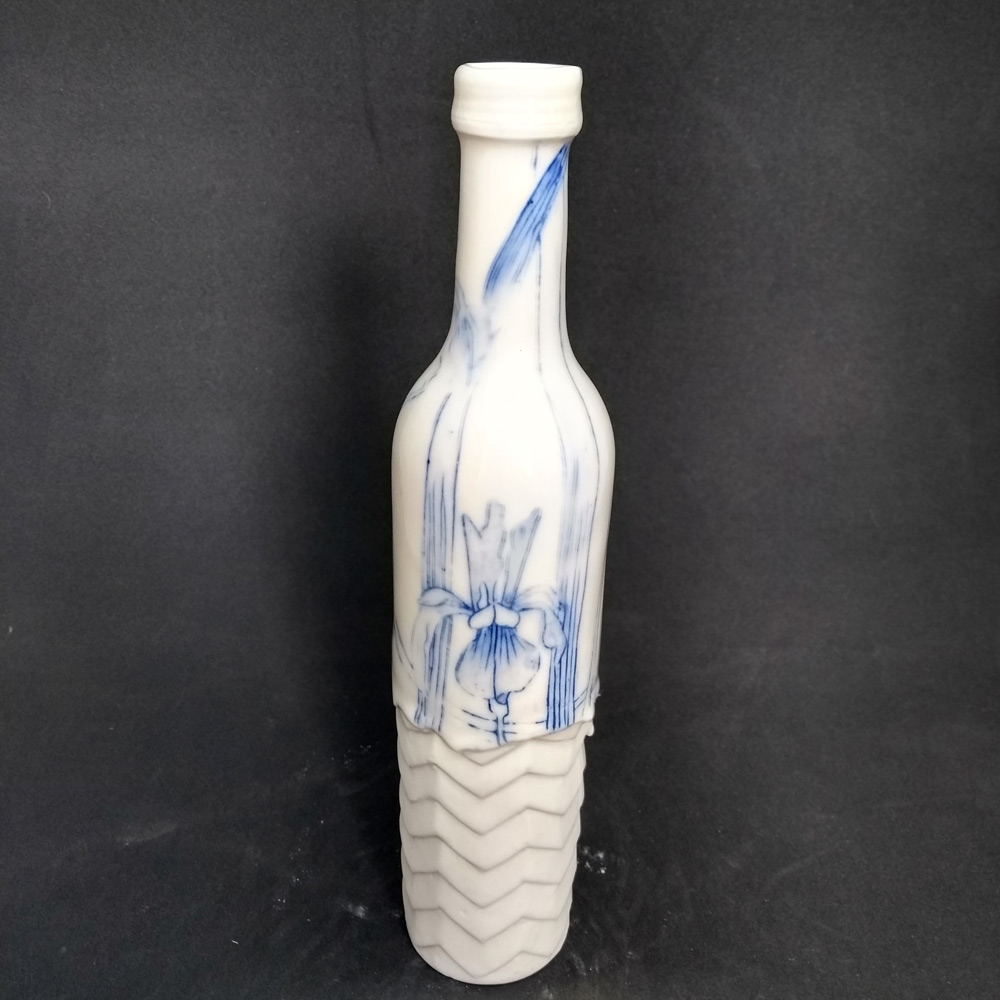 A slim porcelain bottle with a protea stopper – ideal as a bud vase – hand-built, painted and carved, by Paarl ceramic artist Kate van Putten. Please specify which one when you order.