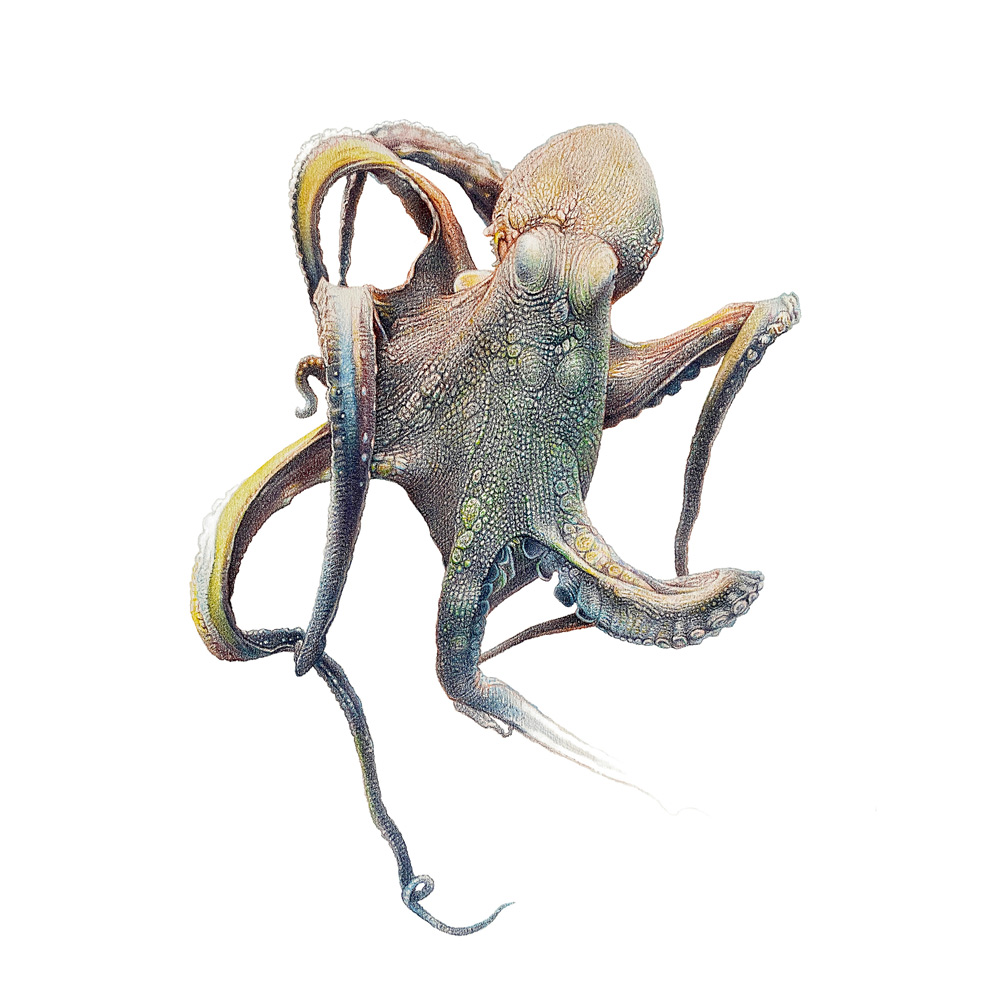 “The octopus is arguably the most perfectly evolved animal on the planet. With eight legs, three hearts and a complex nervous system, it is able to shape shift and change colour instantly. An expert hunter and a master of disguise, the octopus continues to thrive and survive, even in the face of human persecution.”
