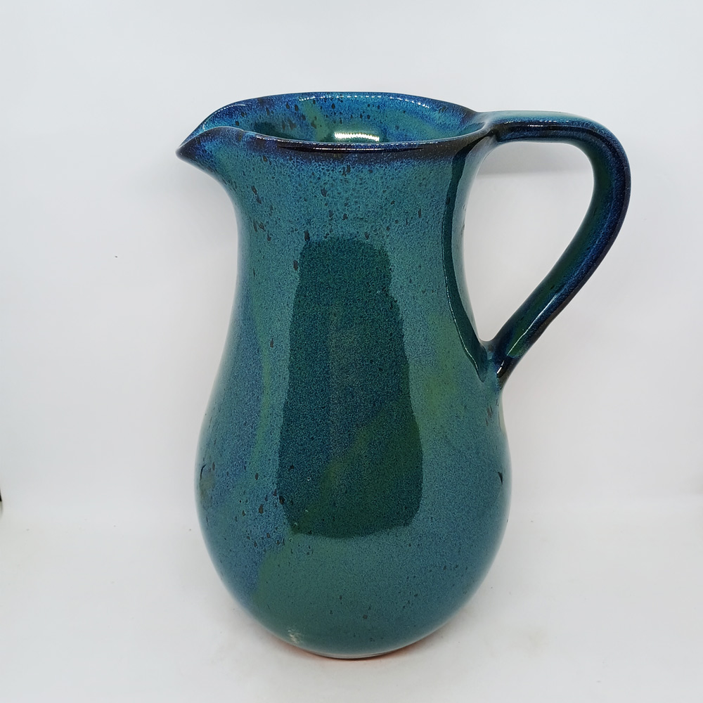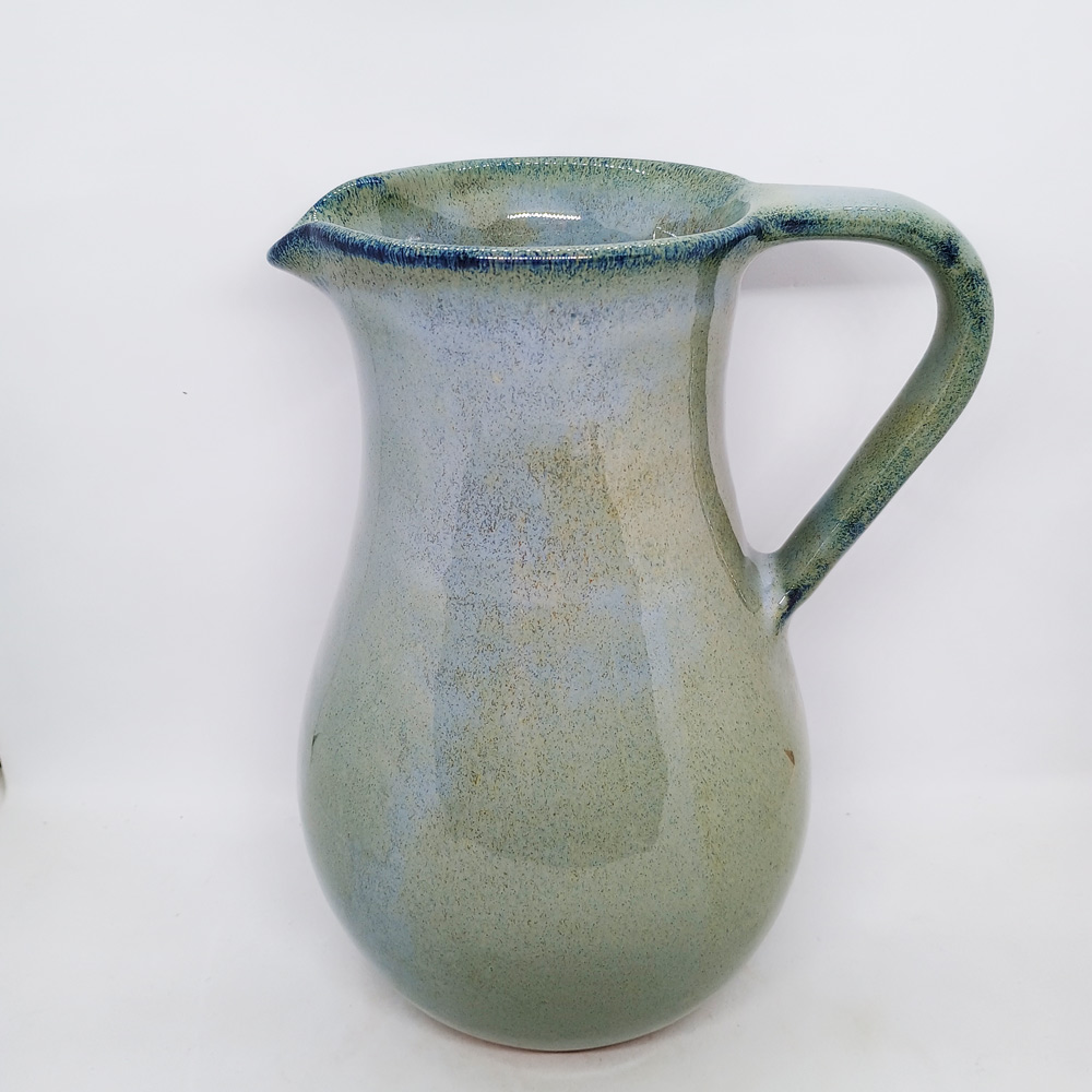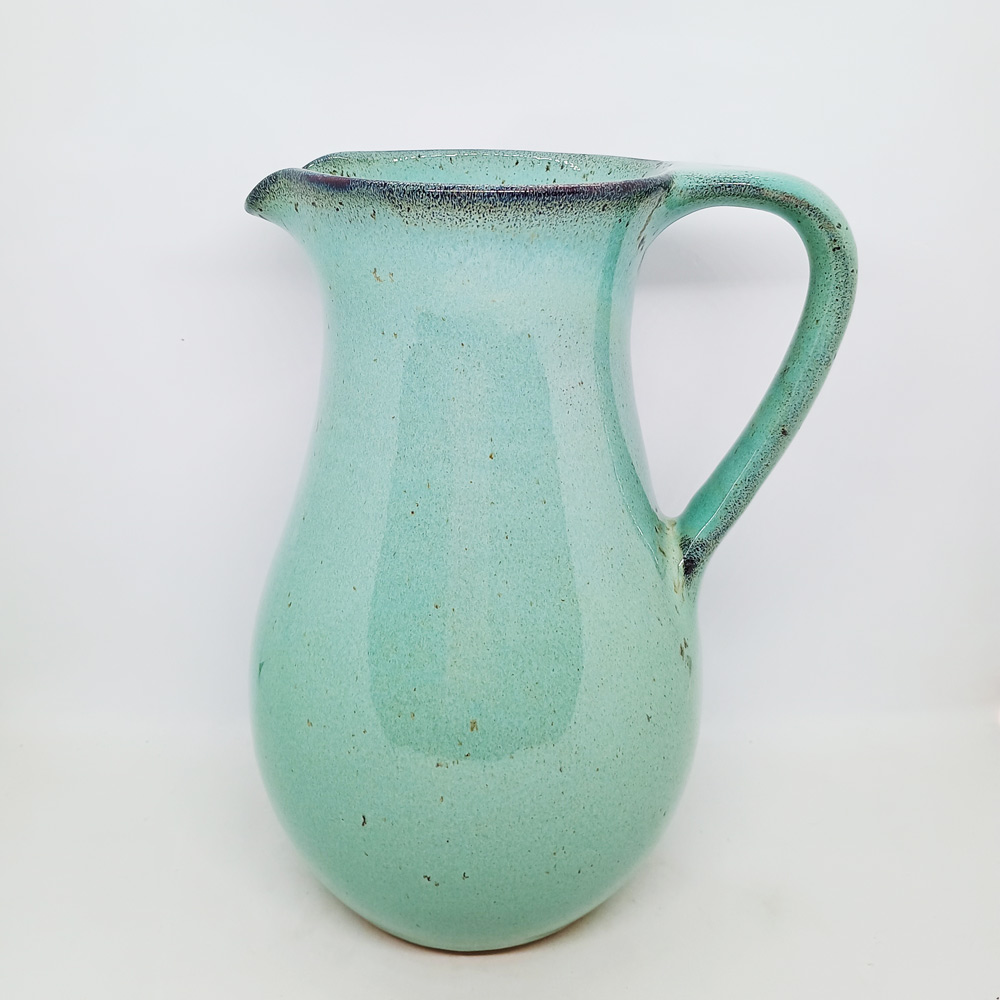 A statuesque handmade jug, fully functional, in an alluring soft glaze for which Mervyn Gers’ ceramics from Cape Town are well-known. Please specify which colour if ordering on-line; – mint, green, grey or blue.